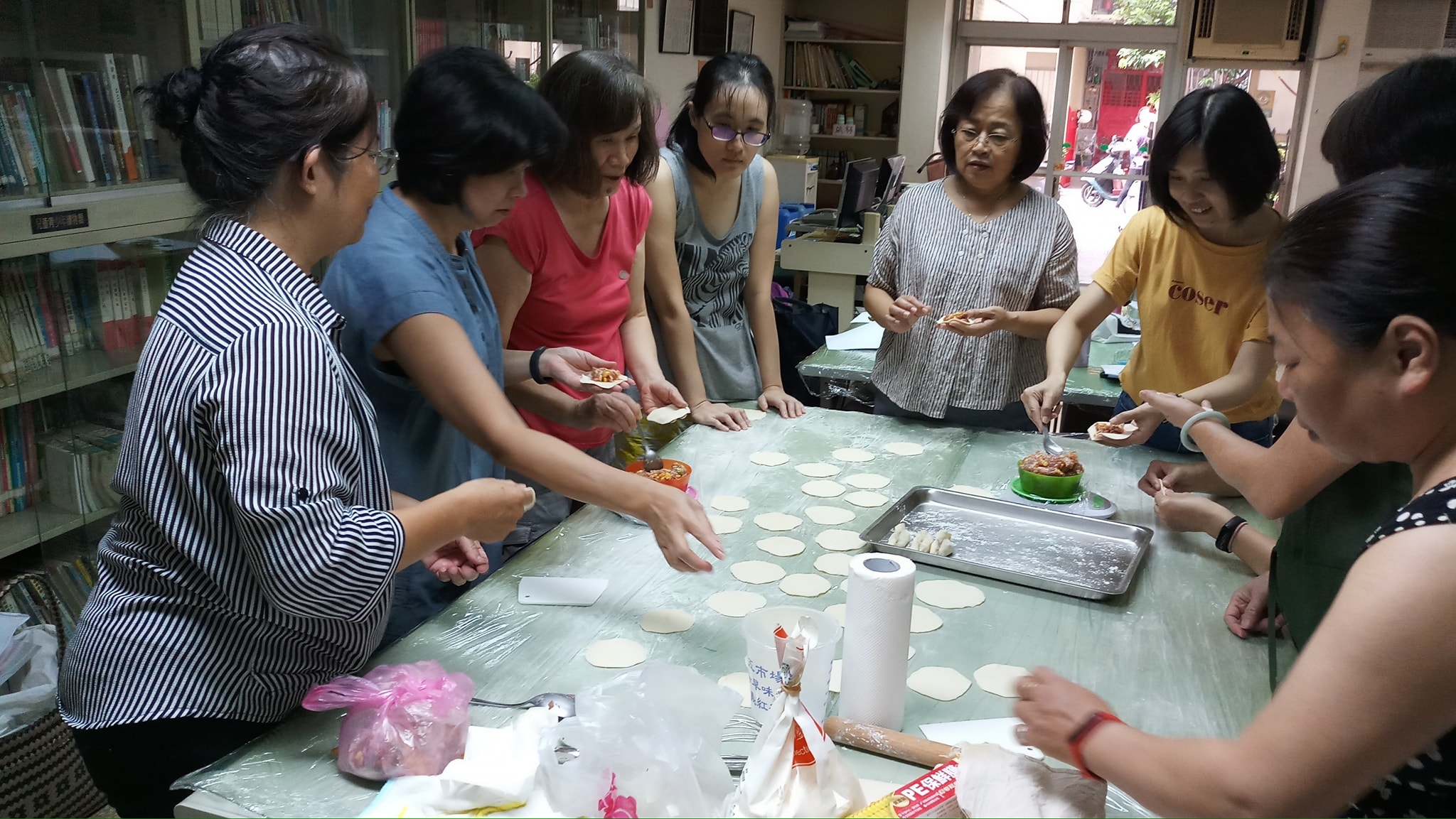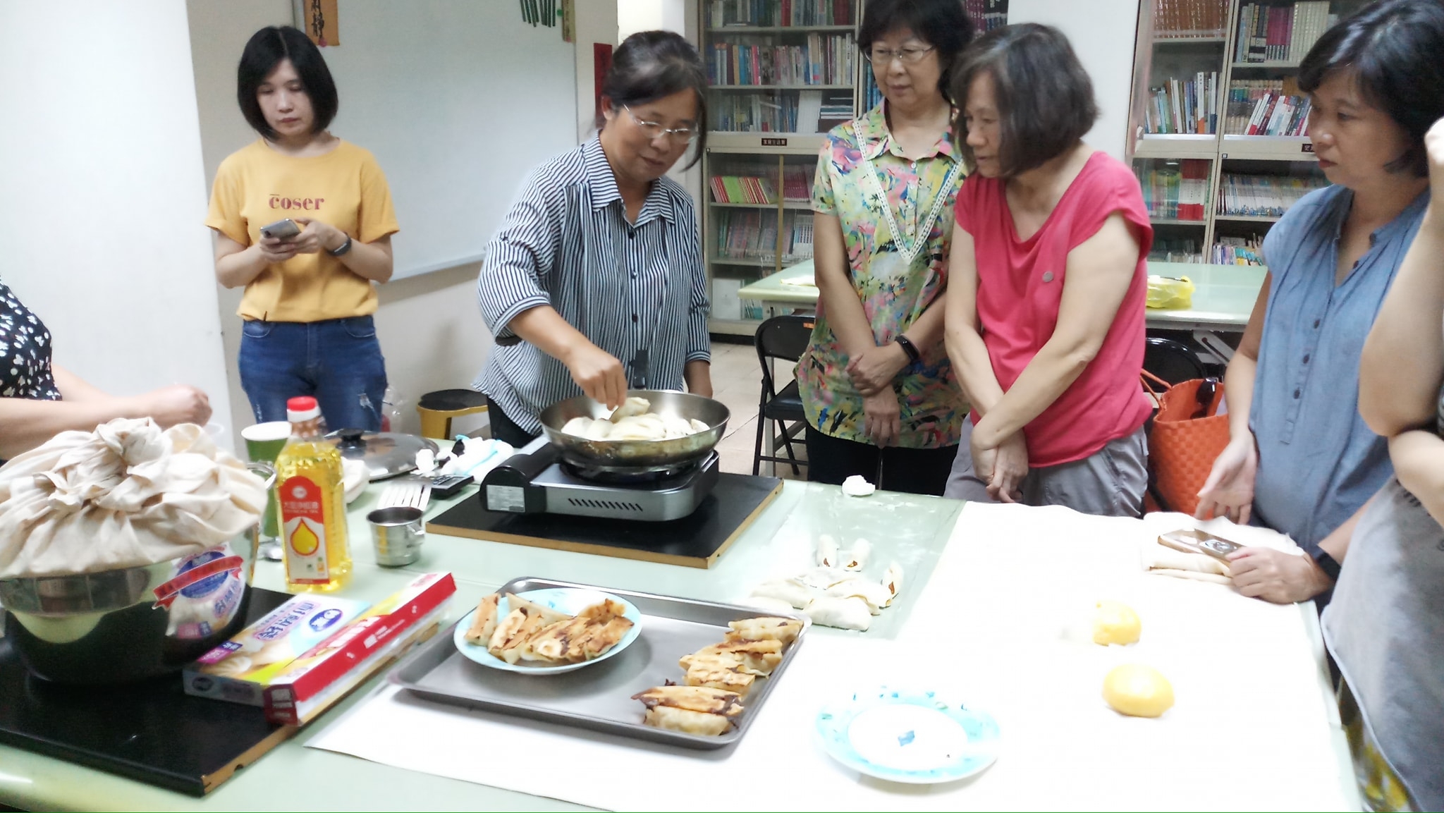 是否到其他地區旅遊,就會想品嚐各地不同特色的小吃,才會有到此一遊的感覺。此次開設的地方小吃班課程內容有:鍋貼.台南棺材板.蕃薯包.港式蘿蔔糕.香菇肉包.饅頭.黑糖糕.椰絲麻糬球。由老師準備食材及器具,學員從手揉麵團,麵團分割.整形,炒餡料,肉包包餡,將成品放入蒸模,當一個個熱騰騰的蕃薯包與鍋貼出爐,心中興奮雀躍不已,尤其吃著自己現做的點心,是無比幸福之事。每位學都很期待下次課程,老師會帶領大家製作什麼美味的小吃。